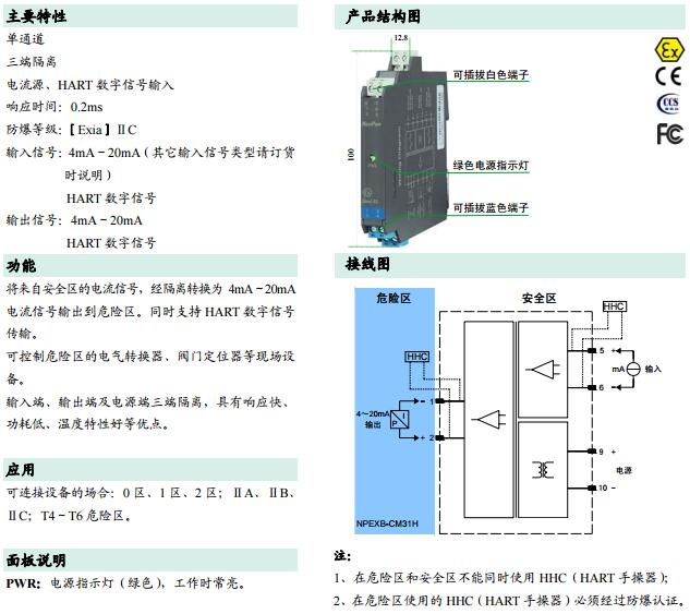 NPEXB-CM31H,電流輸出型隔離式安全柵