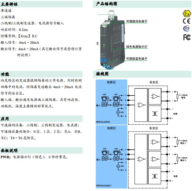 NPEXA-CM31,NPEXA-CM311,檢測端隔離式安全柵