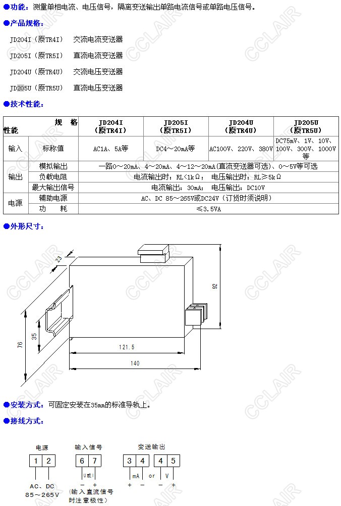 JD205U,JD204I,JD205I,JD204U,單路電流/電壓變送器