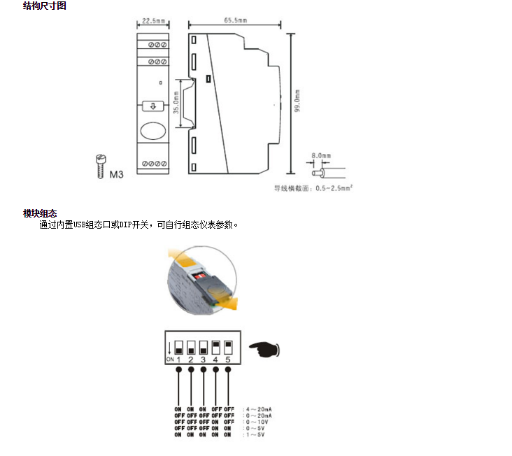 通過內(nèi)置USB組態(tài)口或DIP開關(guān),可自行組態(tài)儀表參數(shù)