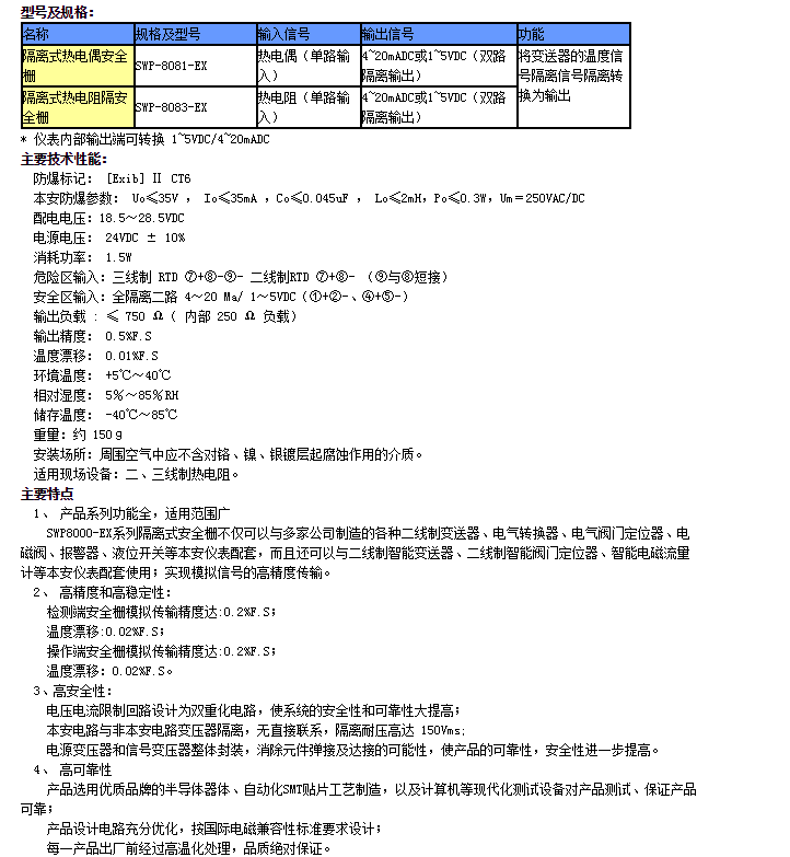 SWP-8081-EX,SWP-8083-EX,隔離式熱電阻隔安全柵