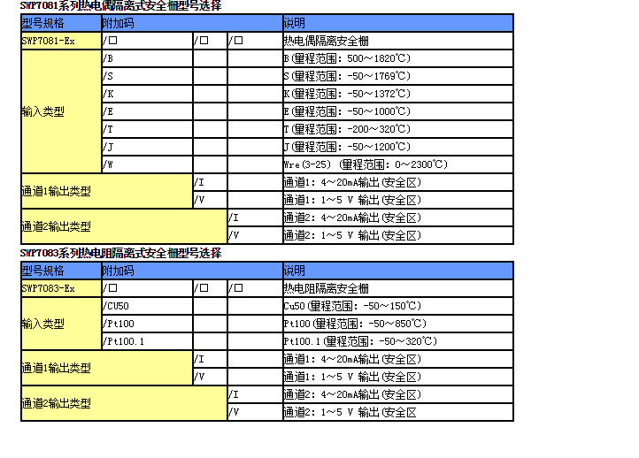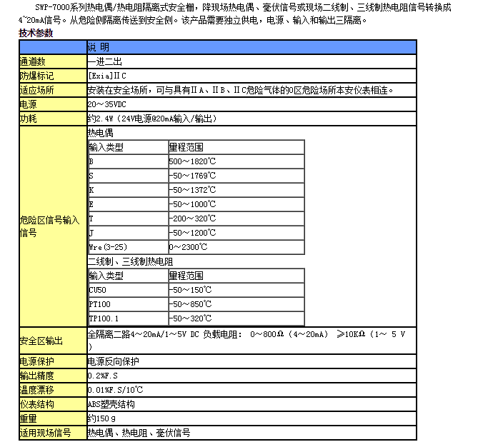 SWP7081-Ex,SWP7083-Ex,熱電偶/熱電阻隔離式安全柵