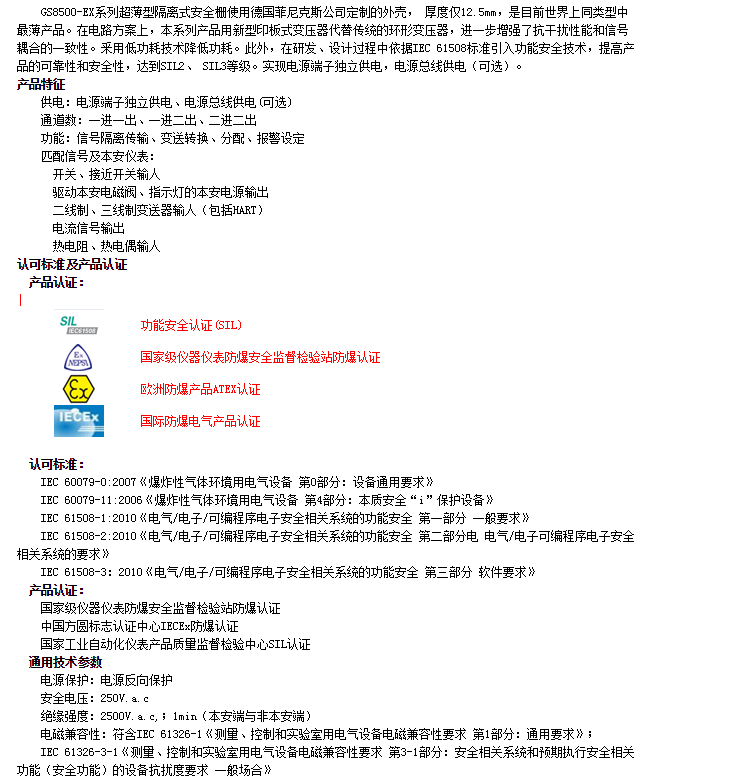 GS8572-EX,GS8572-EX.TC,GS8572-EX.RTD,隔離式安全柵