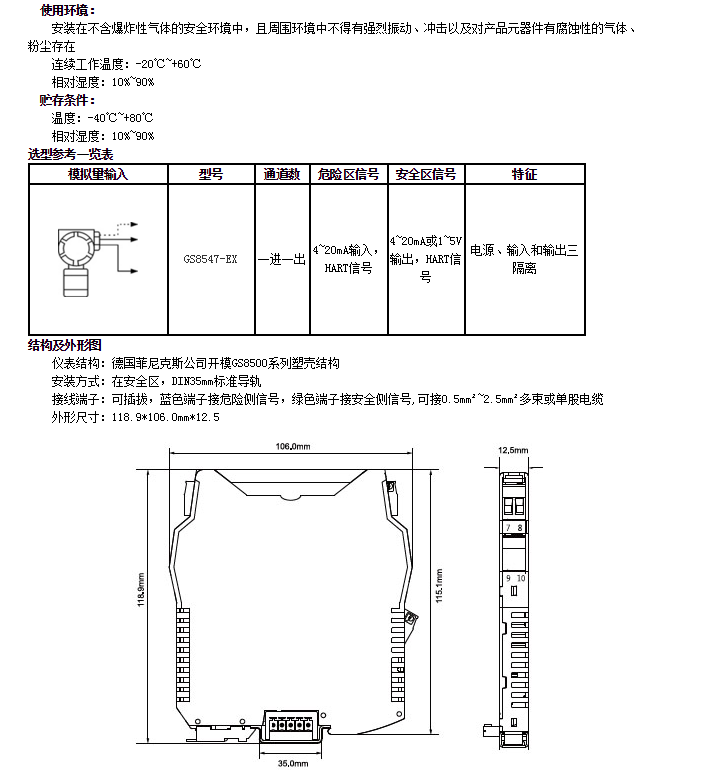 GS8547-EX,模擬量輸入隔離柵