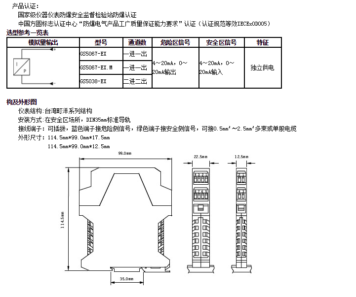 GS5067-EX,GS5067-EX.M,GS5038-EX,輸出隔離式安全柵