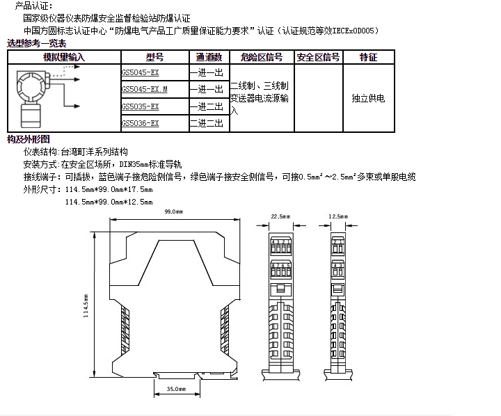 GS5045-EX,GS5045-EX.M,GS5035-EX,GS5036-EX,輸入隔離式安全柵