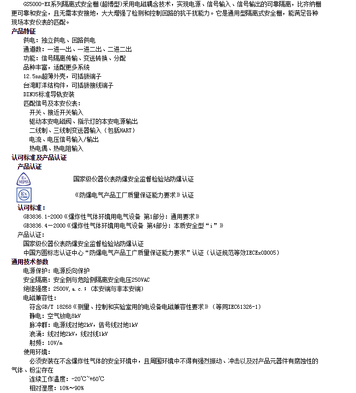 GS5011-EX,GS5011-EX.M,GS5012-EX,開關(guān)量輸入隔離式安全柵
