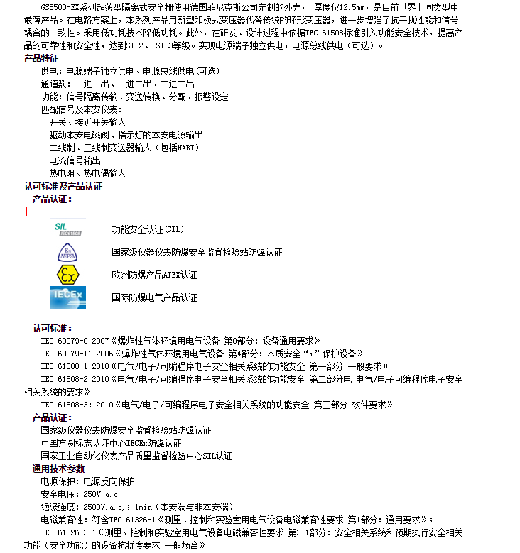 GS8512-EX.11,GS8512-EX.12,GS8512-EX.22,GS8523-EX,GS8523-EX.I,安全型隔離式安全柵