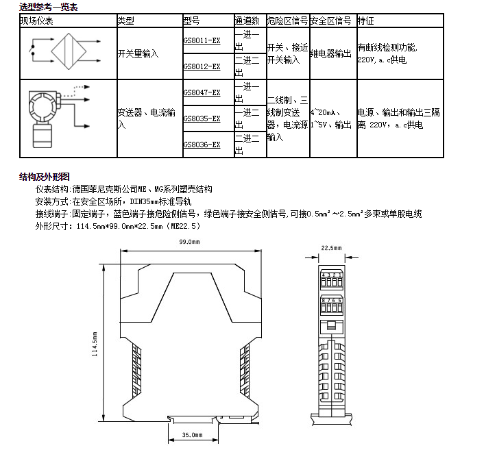 GS8011-EX,GS8012-EX,GS8047-EX,GS8035-EX,GS8036-EX,隔離式安全柵
