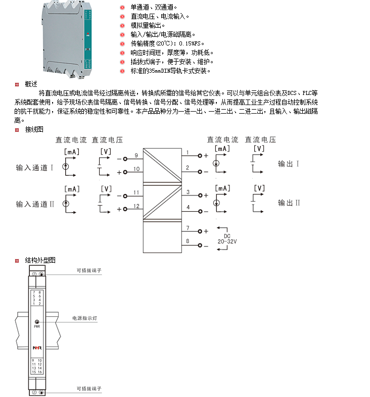 型號(hào): NHR-M21-27/27-0/0-D,NHR-M21-25/31,NHR-M21-27/29,NHR-M21-28/X,電壓/電流隔離器