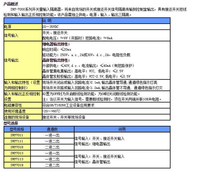 SWP7011,SWP7111,SWP7018,SWP7013,SWP7113,SWP7019,開(kāi)關(guān)量輸入隔離器