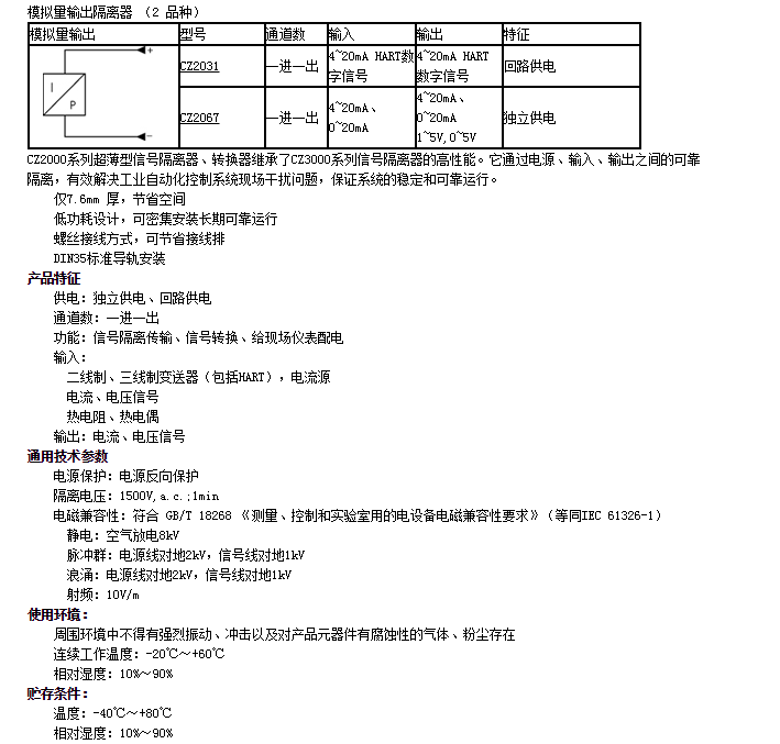 CZ2031,CZ2067,模擬量輸出隔離器