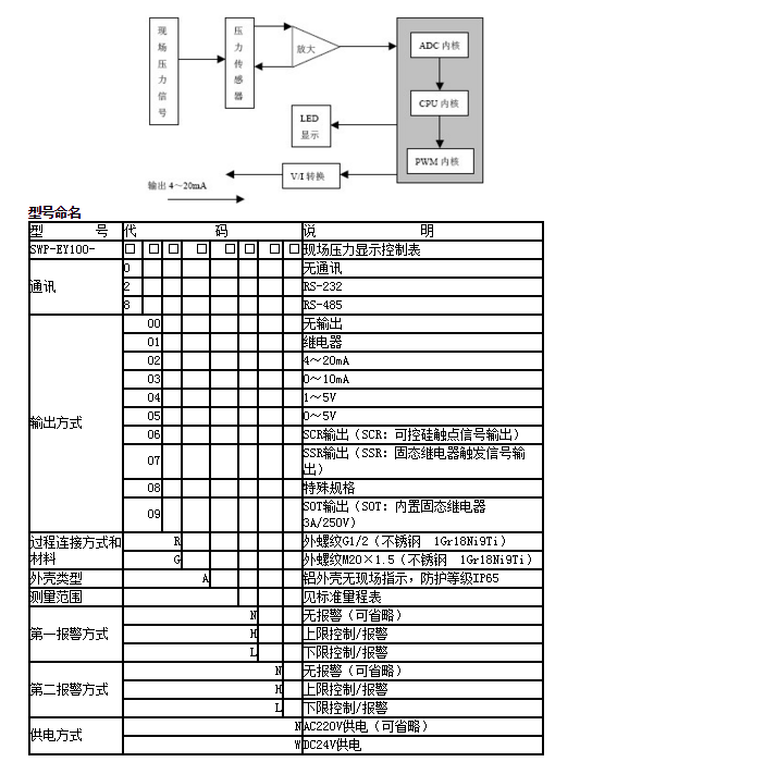 SWP-EY100-001R-A-D1-HL,SWP-EY100-006G,顯示壓力變送控制器