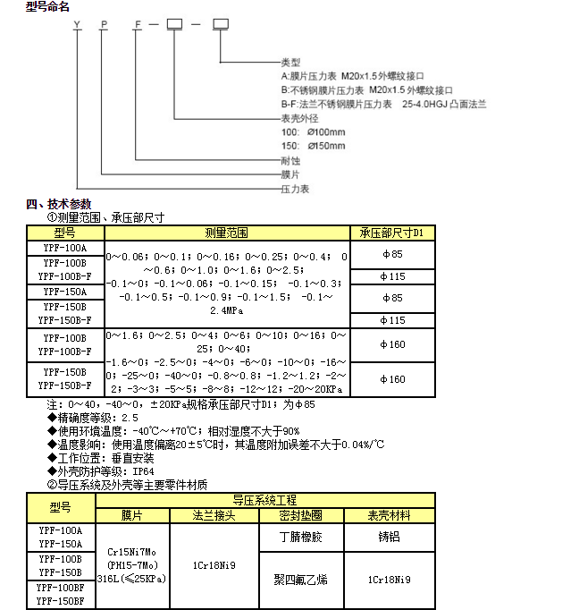 可根據(jù)測量介質(zhì)對(duì)腐蝕性能的不同要求而選用不同材料的膜片。