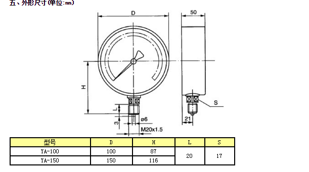 | YA-150 | 0~10、0~16、0~25、0~40、0~60 |
