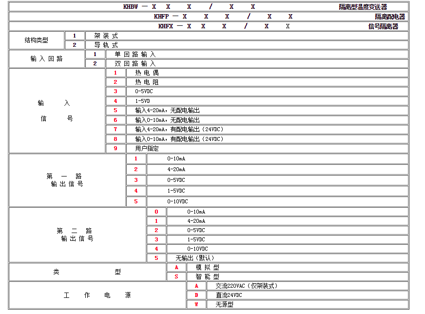 KHBW-111,KHBW-112,KHBW-113,KHBW-114,KHBW-115,隔離溫度變送器