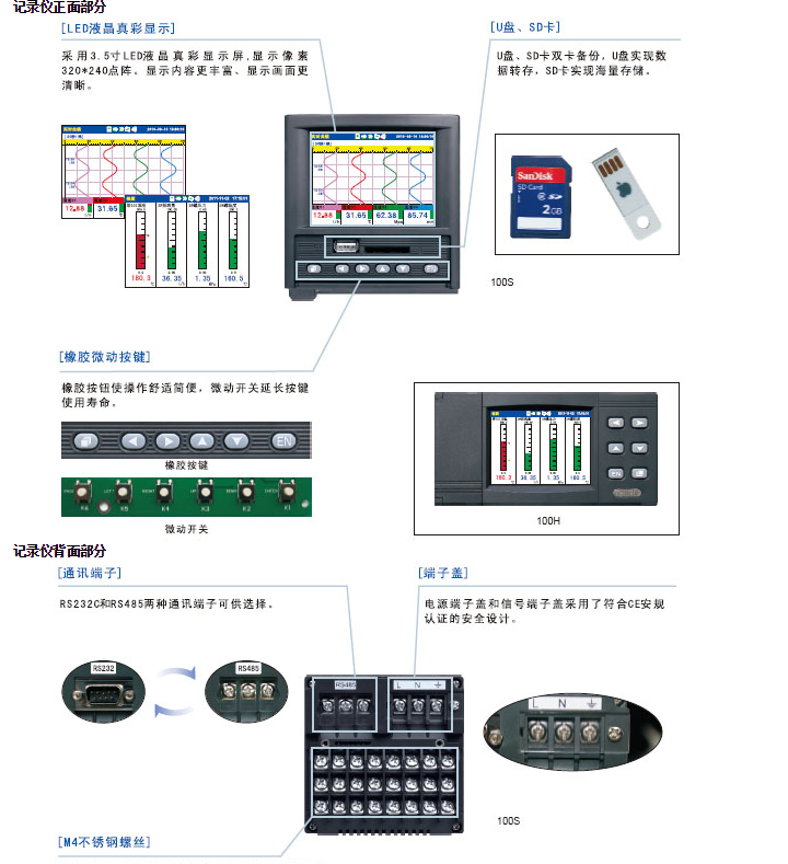 KH100系列是我公司歷經十年開發(fā)成功的新一代無紙記錄儀。產品集高可靠性、高穩(wěn)定性于一身;是國內第一款具U盤、SD卡雙卡備份的無紙記錄儀,U盤實現數據轉存,SD卡實現海量存儲;中英文畫面切換;縱橫走紙自由選擇;自定義曲線顏色;信號萬能輸入、高精度、抗干擾能力強。