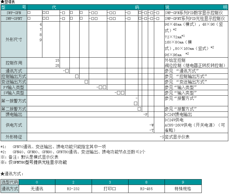 SWP-GFN系列高精度型PID自整定數(shù)字/光柱顯示控制儀(外給定或閥位控制)適用于需要進行高精度測量控制的系統(tǒng),可取代放大器直接驅(qū)動執(zhí)行的機構(如閥位等),集數(shù)字儀表與模擬儀表于一體,可對溫度、壓力、液位、速度等測量信號進行數(shù)字量顯示控制(高亮度LED數(shù)碼顯示)及相對模擬量顯示(光柱顯示),使測量值的顯示更為清晰直觀,并可選擇雙光柱顯示方式。