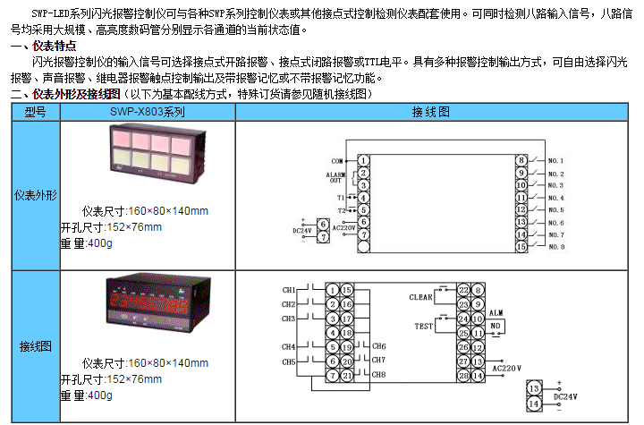 型號: SWP-X803-D-A-P-W,SWP-X803-D-A-P-T,SWP-X803-D-B-P-W,閃光報警控制儀