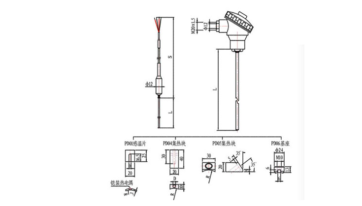 以鎧裝熱電偶配集熱塊為測溫元件用于測量屏過、高過、高再等金屬管壁溫度