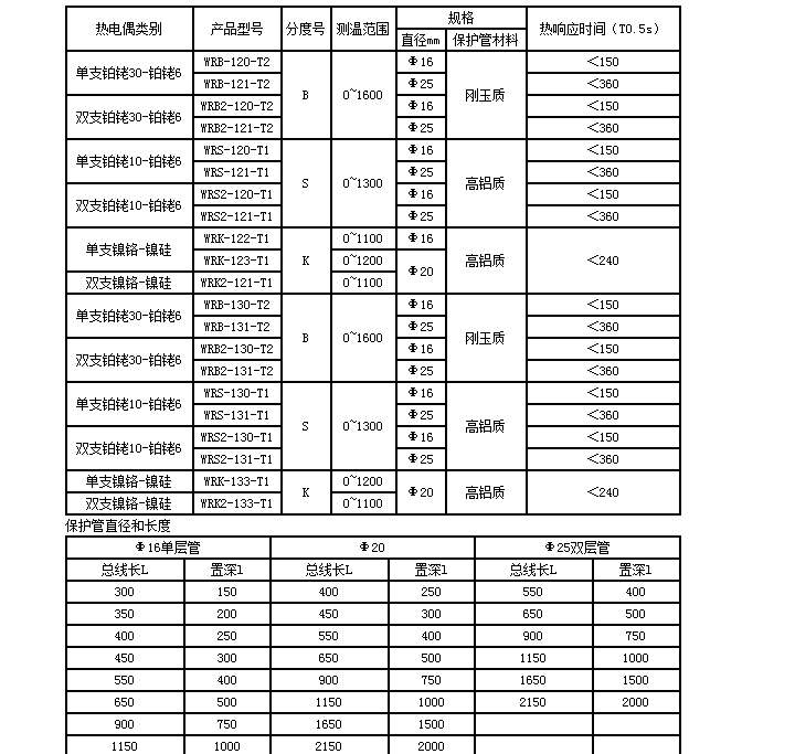 產品執(zhí)行標準:IEC584、IEC1515、GB/T16839-1997、JB/T5582-91