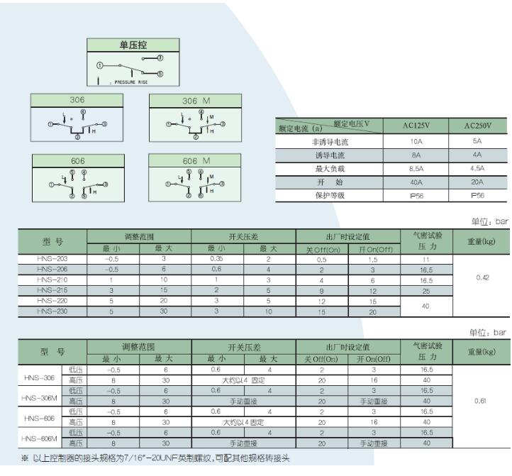 HNS壓力開(kāi)關(guān)電氣參數(shù)