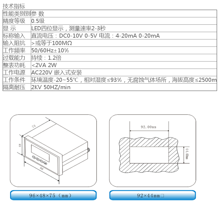 規(guī)格:DC4-20mA信號(hào),顯示50HZ