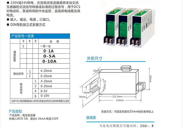 AJD194-BS41電流變送器 輸入AC0-5A 輸出4-20mA