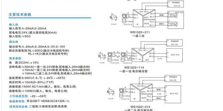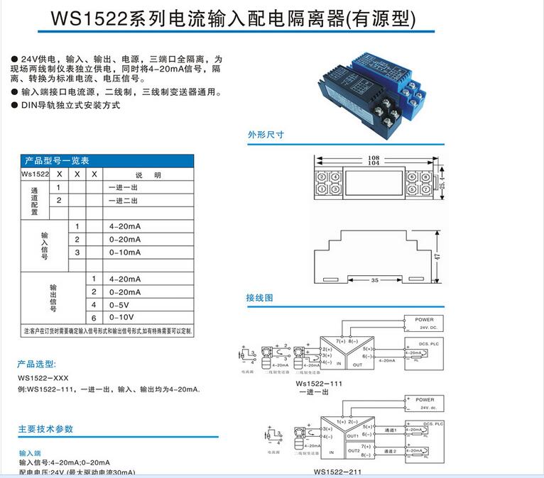 WS1522信號轉(zhuǎn)換模塊 輸入范圍:4-20mA、0-10V、0-20mA、0-5V、等用戶特定規(guī)格
