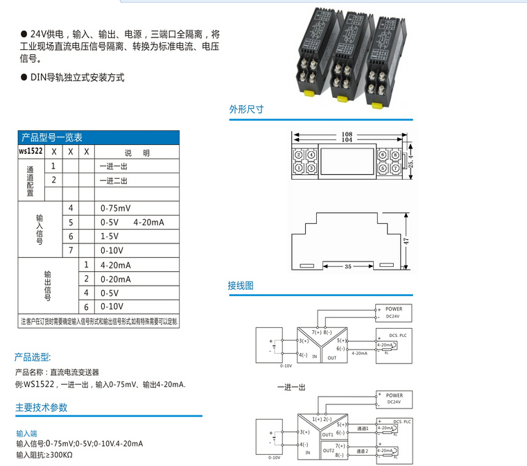 信號(hào)隔離器輸出范圍:4-20mA、0-10V、0-20mA等用戶需要的標(biāo)準(zhǔn)信號(hào)
