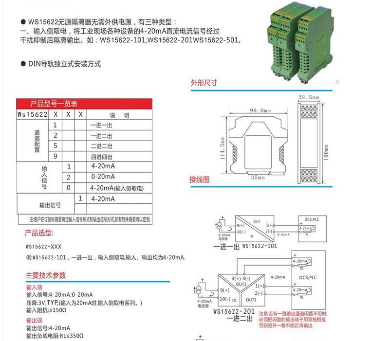WS15622無源過程信號隔離器,全隔離信號隔離器,將輸入的四路信號隔離輸出,無需外接電源可正常工作,輸入輸出隔離,傳輸精度高,標(biāo)準(zhǔn)DIN T型導(dǎo)軌安裝