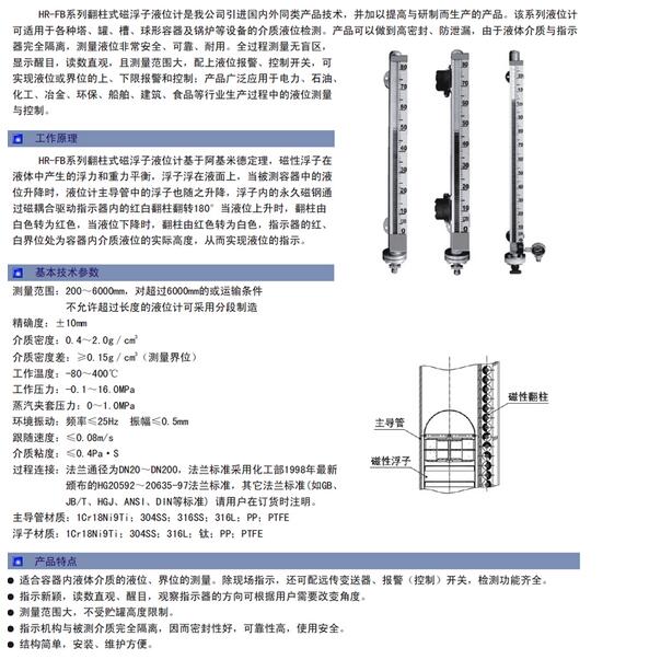 HR-FZ系列浮球式液位變送器,用于將容器內(nèi)的介質(zhì)液位變送為4~20mA二線制標(biāo)準(zhǔn)信號輸出。另外,變送器還可以提供現(xiàn)場指示。