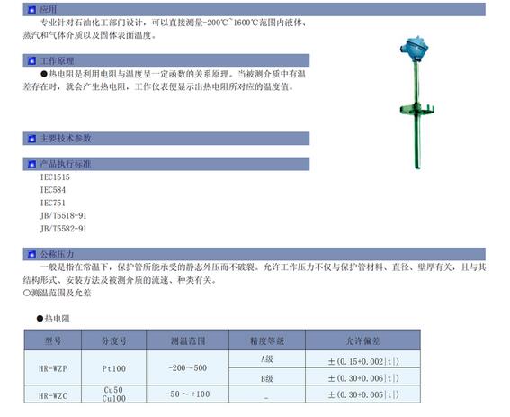 HR-WZ,HR-WZP,HR-WZC,石油化工熱電阻