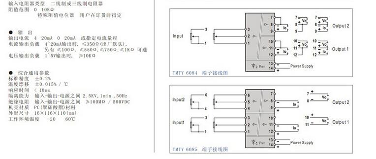 輸入類型:二線制或三線制電阻器。電阻范圍:0-10KΩ