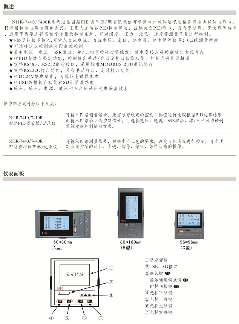 NHR-7400/7400R,液晶四路人工智能調(diào)節(jié)器/調(diào)節(jié)記錄儀