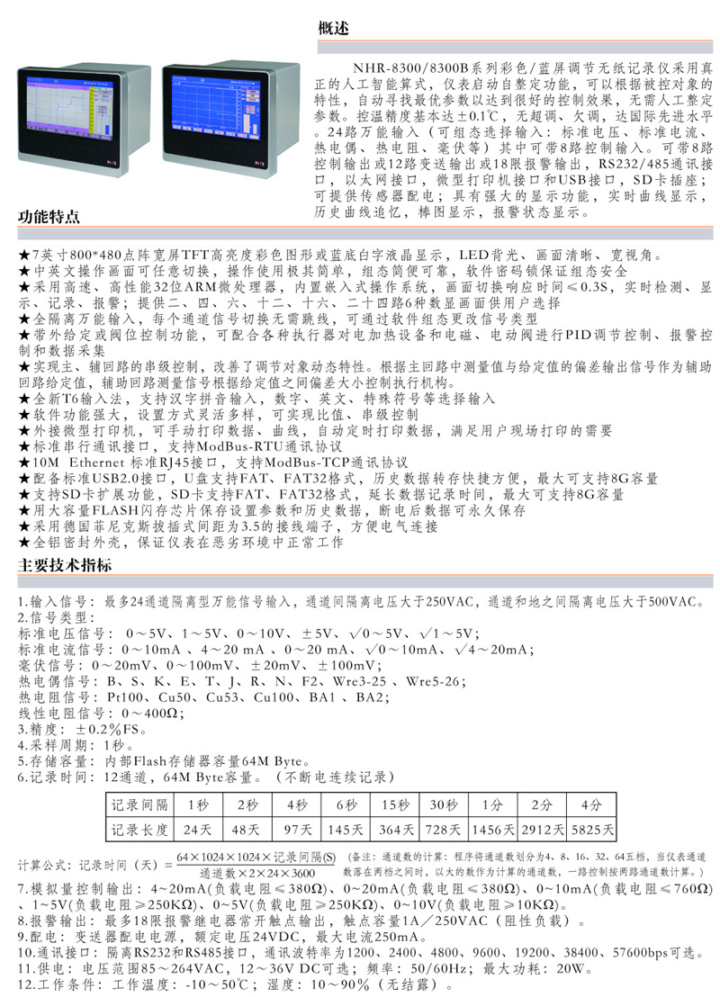 NHR-8300/8300B,8路彩色/藍屏調(diào)節(jié)無紙記錄儀