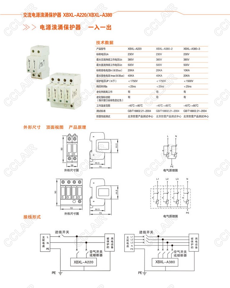 XBXL-A220,XBXL-A380,交流電源浪涌保護器(一入一出)