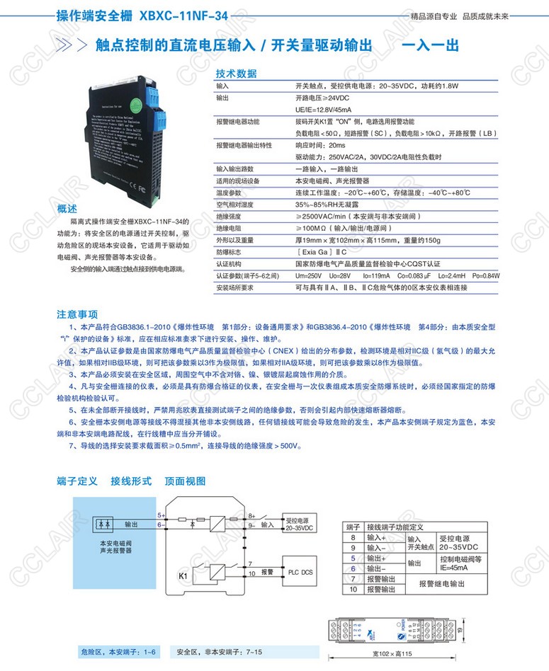 XBXC-11NF-34,操作端安全柵開關(guān)量驅(qū)動輸出(一入一出)