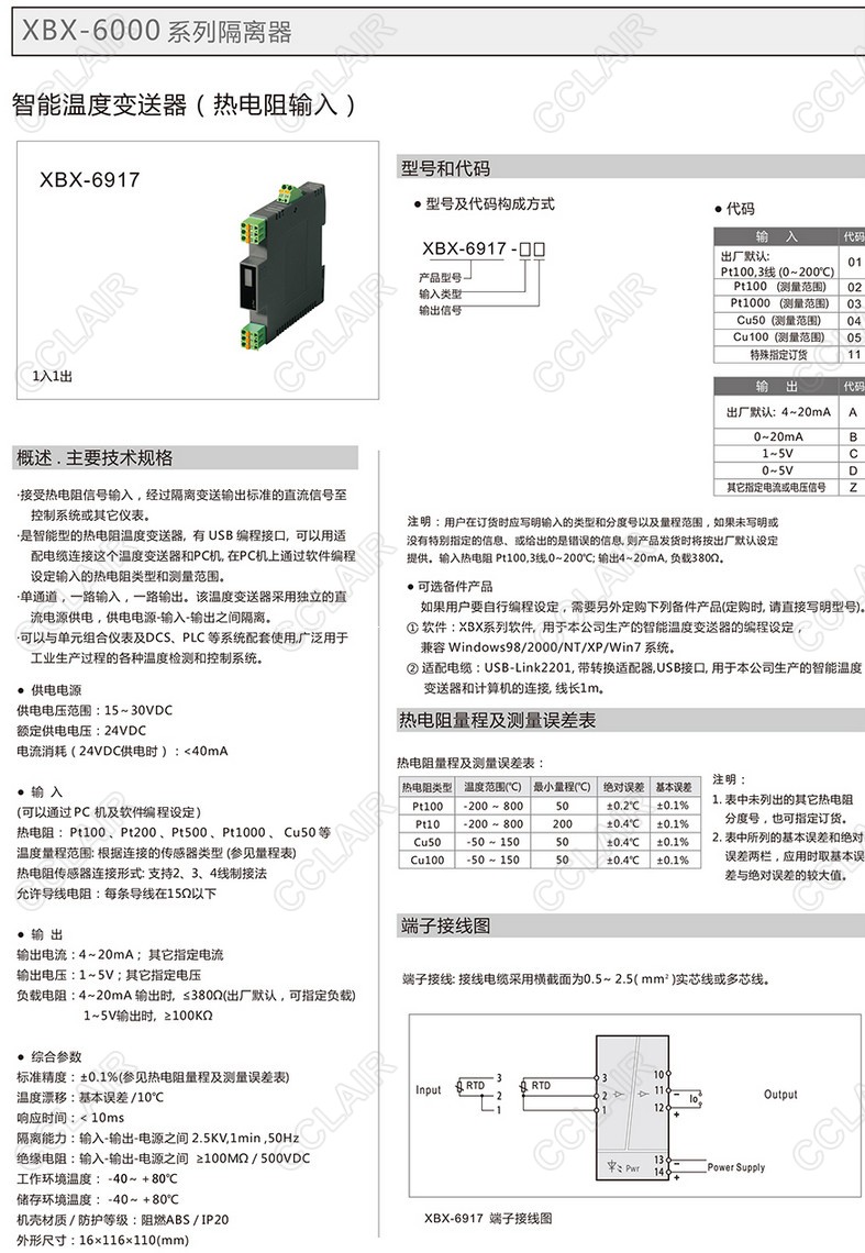 XBX-6917,XBX-6917-01A,,XBX-6917-01B,XBX-6917-01C,智能溫度變送器(熱電阻輸入)(一入一出)