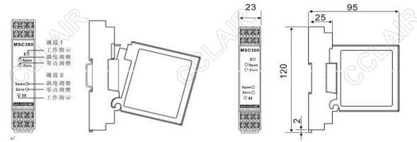35mm導(dǎo)軌卡裝;主機(jī)與底座可以插拔分離外形尺寸圖120mm*95mm*23mm