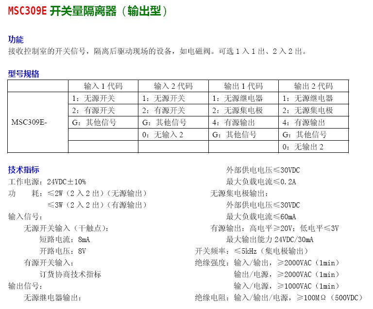 MSC309E-G1,MSC309E-G2,MSC309E-GG,MSC309E-G0,開關量隔離器(輸出型)
