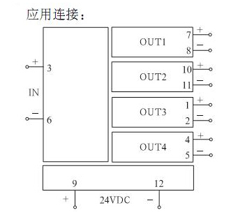 將輸入信號(hào)變換為四路相互隔離的信號(hào);輸入 輸出1-4 電源六者間相互隔離;低功耗 低熱量 低漂移;DIN T型導(dǎo)軌安裝 接線端子可插拔