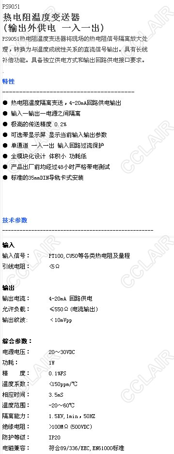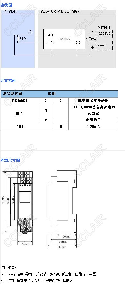 PS90511A,PS90512A,PS9051兩線制熱電阻溫度變送器