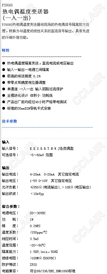 PS90601A,PS90601B,PS90601C,PS906011,PS9060熱電偶溫度變送器(一入一出)