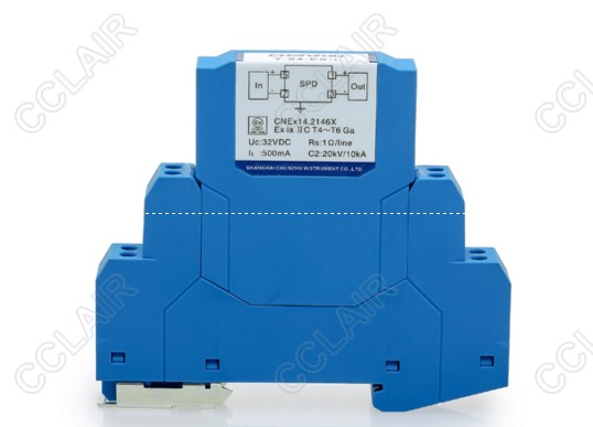 24V信號(hào)SPD,三線制,本安型,適用于線對(duì)地隔離電壓>500V信號(hào)回路,最大放電電流Imax(8/20us):20kA/線,12.5mm超薄,通過(guò)DIN35金屬導(dǎo)軌接地。
