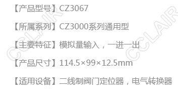 CZ3067 一進(jìn)一出 模擬量輸出隔離器 可驅(qū)動內(nèi)阻高達(dá)800Ω的閥門定位器,4~20mA或0~20mA均保證精度,轉(zhuǎn)換精度高于萬分之五(0.05%F.S.)。 CZ3038 二進(jìn)二出 模擬量輸出隔離器 可驅(qū)動內(nèi)阻高達(dá)800Ω的閥門定位器,4~20mA或0~20mA均保證精度,轉(zhuǎn)換精度高于萬分之五(0.05%F.S.)。