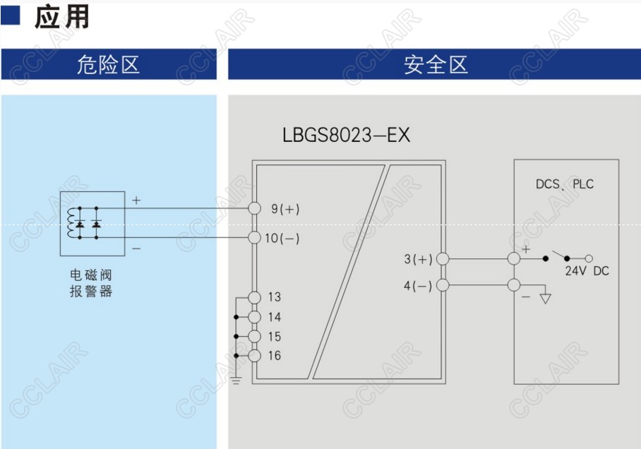 具有防雷擊浪涌保護(hù)功能的開關(guān)量輸出安全柵。它的功能是將安全區(qū)的電源通過開關(guān)控制,驅(qū)動(dòng)危險(xiǎn)區(qū)的現(xiàn)場(chǎng)本安設(shè)備,它適用于驅(qū)動(dòng)如電磁閥、聲光報(bào)警器等一些小功率本安設(shè)備。輸入輸出隔離,允許控制開關(guān)直接連到24DC供電回路的任一端。