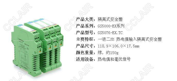 熱電偶輸入隔離式安全柵,將現(xiàn)場(chǎng)二線制、三線制熱電阻信號(hào)轉(zhuǎn)換成0/4~20mA電流信號(hào)或0/1~5V電壓信號(hào),從危險(xiǎn)區(qū)隔離傳輸?shù)桨踩珔^(qū)。它是智能型的,可通過(guò)計(jì)算機(jī)對(duì)熱電阻的分度號(hào)、量程范圍等進(jìn)行組態(tài)。該產(chǎn)品需要獨(dú)立供電,電源、輸入和輸出三隔離。