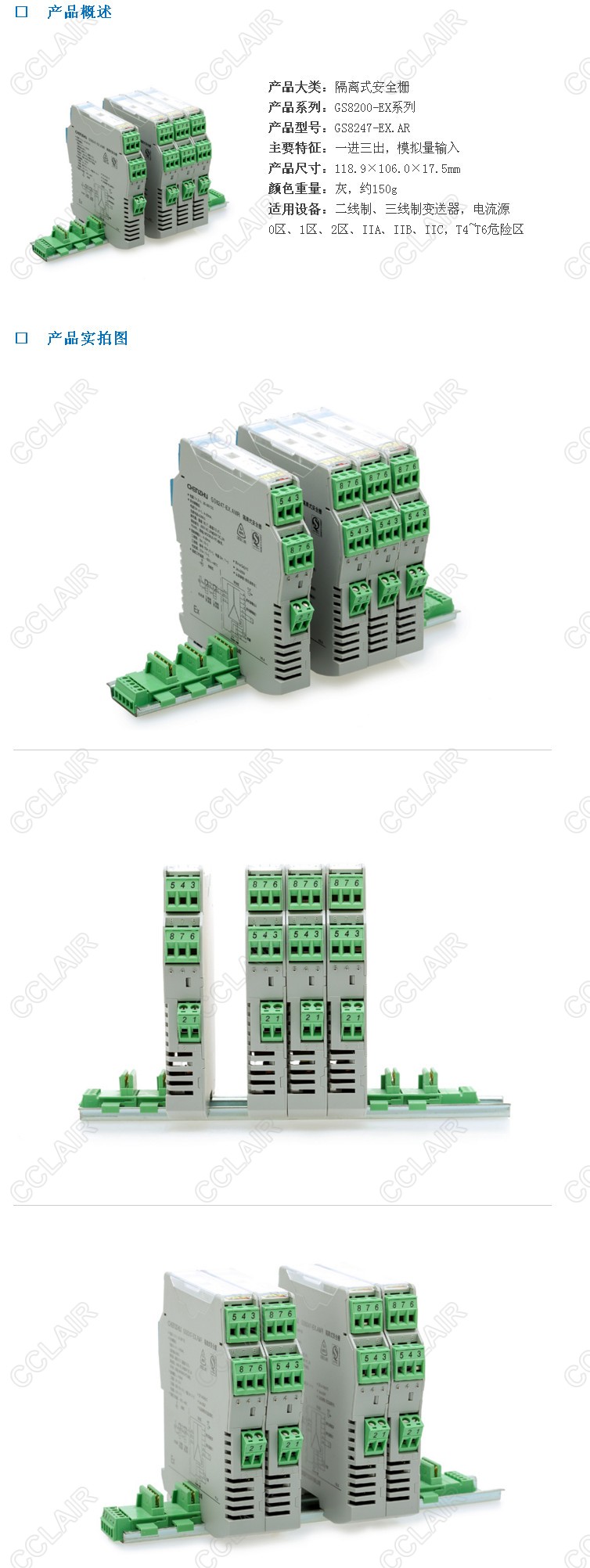 模擬量輸入,4~20mA、繼電器輸出報警設定隔離柵。給危險區(qū)的變送器提供隔離電源,并將變送器或電流源產(chǎn)生的4~20mA電流信號從危險側隔離傳輸?shù)桨踩珎?。具有報警設定功能,可根據(jù)用戶設定報警點由繼電器報警輸出。電源可選擇導軌或端子連接方式。