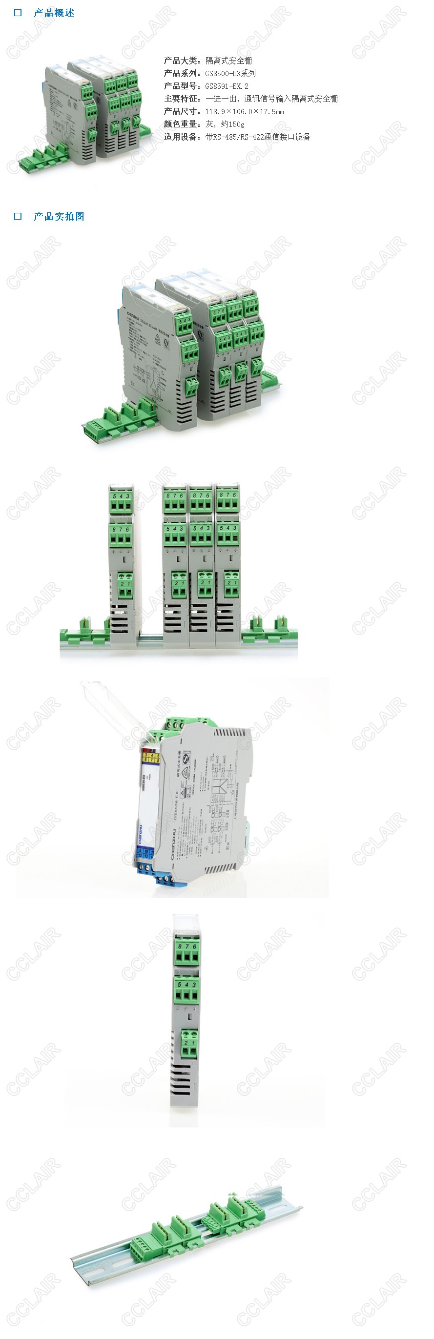 GS8591-EX.2 一進(jìn)一出 RS-485半雙工輸入RS-485全雙工輸出隔離式安全柵
